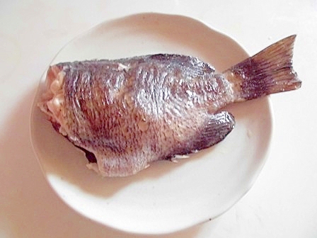 姿黒鯛の塩焼き 半身を刺身で食べた昨日の残り 炎のクリエイター日記